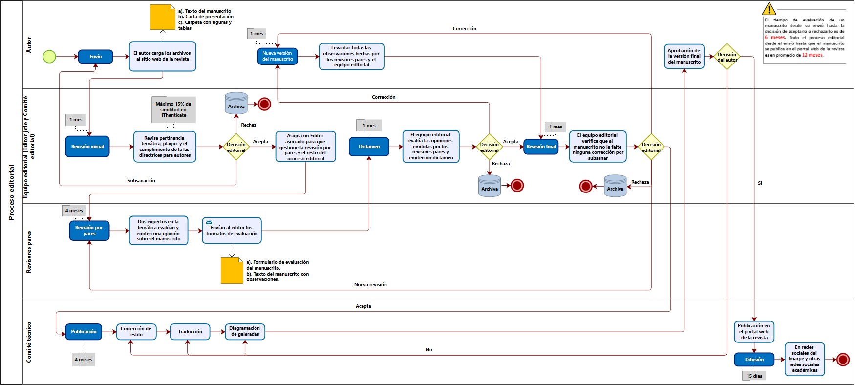 El equipo editorial, en base a la evaluación de los revisores pares, toma la decisión de publicar o rechazar el manuscrito; en ambos casos, la decisión se notifica formalmente a través de una carta al autor de correspondencia. Si el manuscrito no requiere de ninguna corrección, pasa a la etapa de revisión final. Si el manuscrito debe ser corregido para que pueda ser publicado, el editor envía a los autores el formulario de evaluación y el texto del manuscrito, con las observaciones y recomendaciones hechas por los revisores.